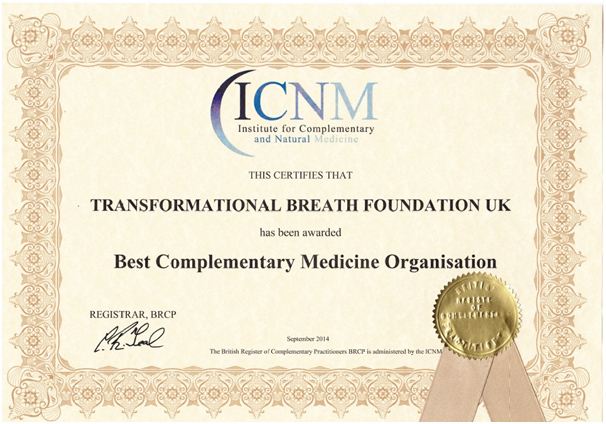 In September 2014, Transformational Breath won an award for being the best complimentary therapy by The Institute of Complementary Medicine.